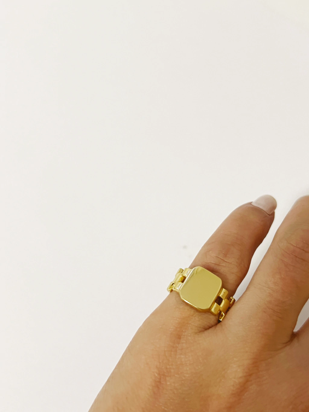 Anel feminino no banho de ouro 18k, de dedinho com design clean. Um modelo atemporal e super coringa que te ajuda a criar composições minimalistas, delicadas e super estilosas.