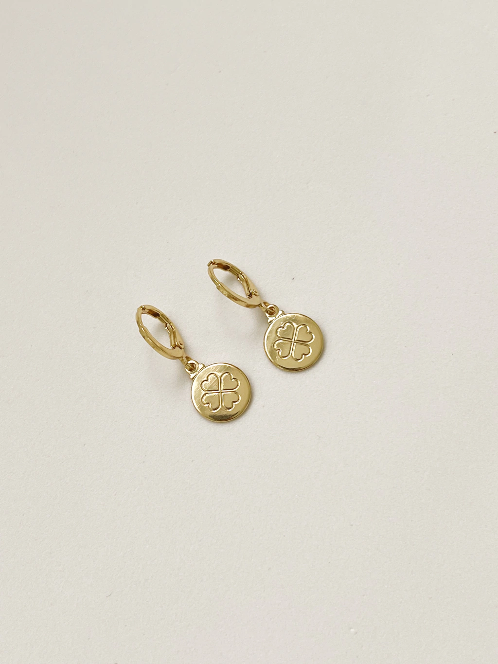 Argola apresenta um delicado pingente de trevo, simbolizando sorte e prosperidade. O design meticulosamente elaborado combina elegância com um toque de significado, criando uma peça que é tanto estilosa quanto especial.