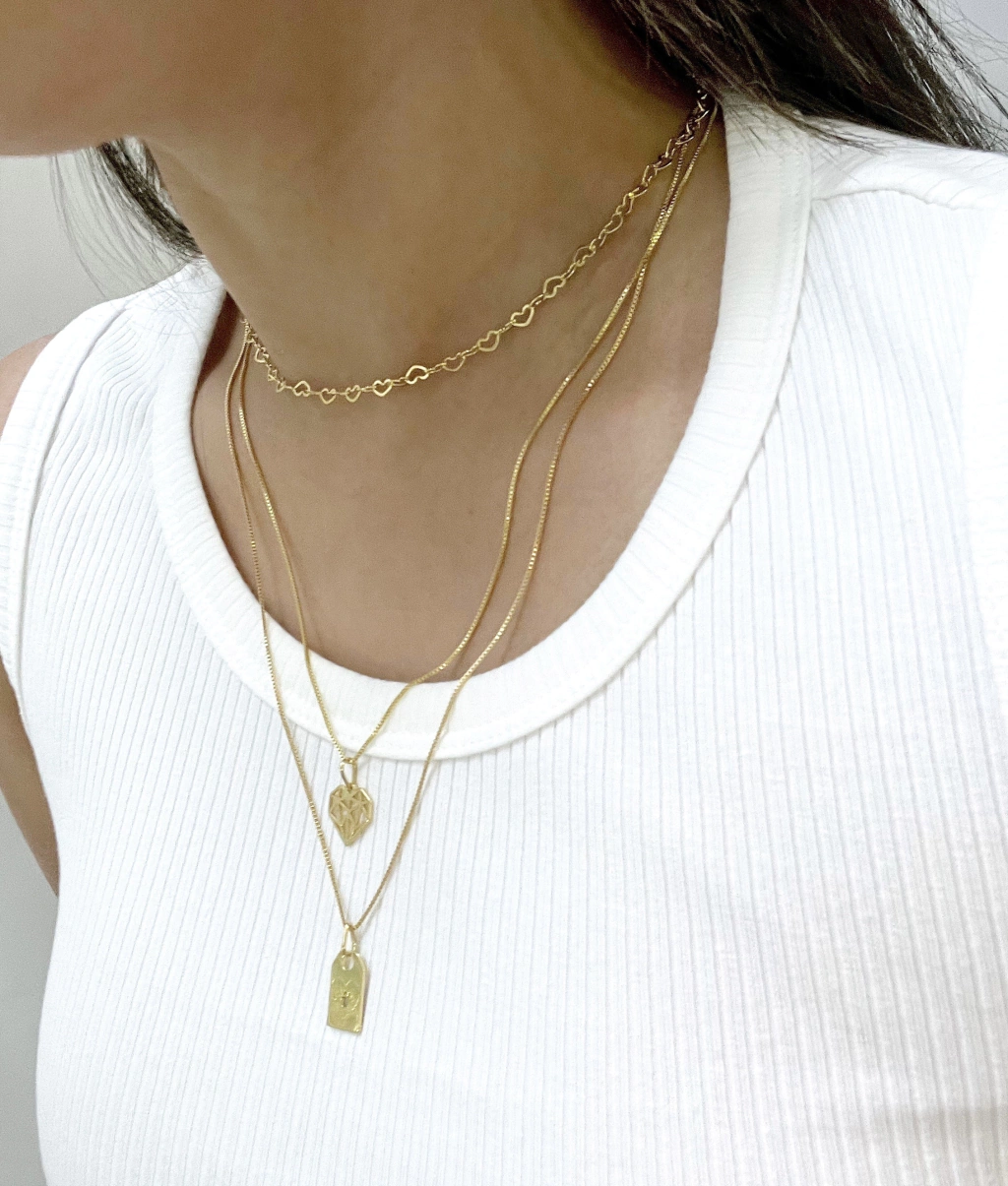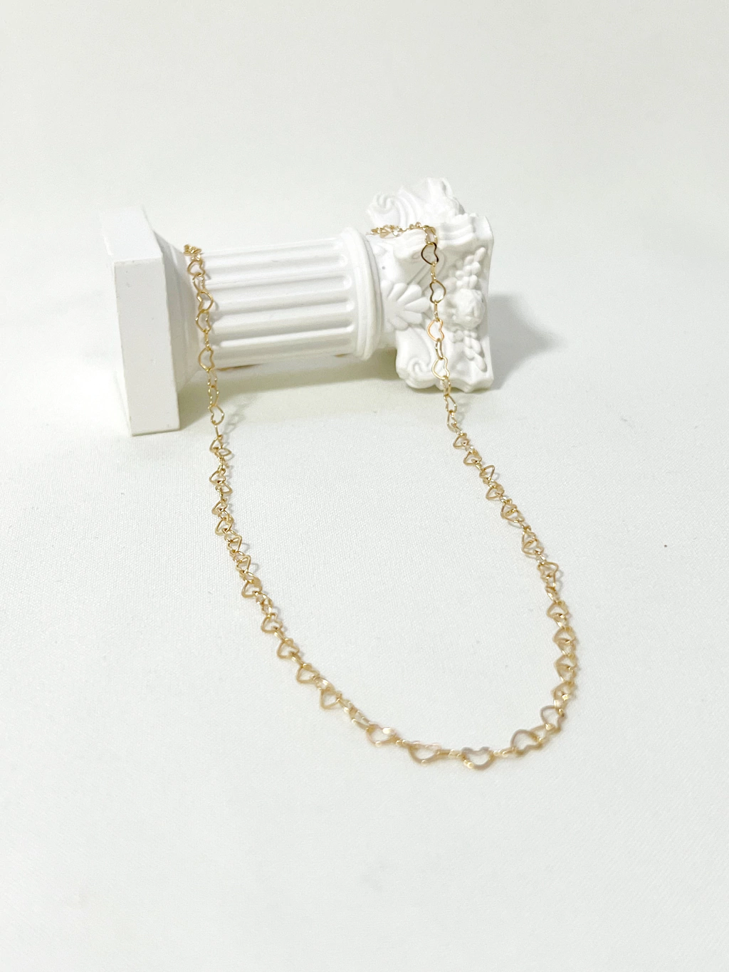 Choker feminina, no banho de ouro 18k, com elos delicados em formato de coração.