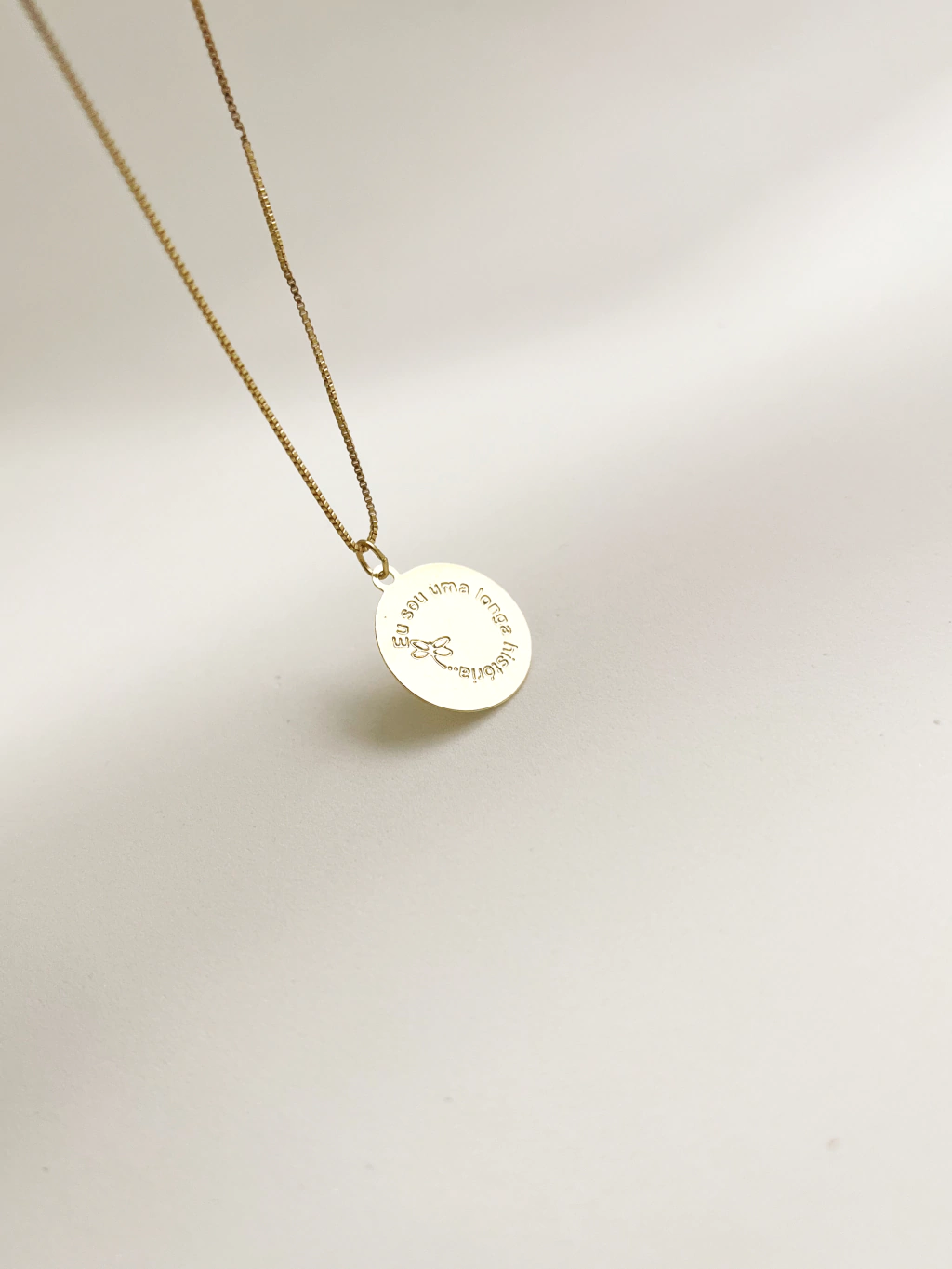 Colar minimalista com pingente em placa: Eu sou uma longa história... Possui um significado especial, pois além de embelezar seus looks, representa a singularidade da sua história de vida!