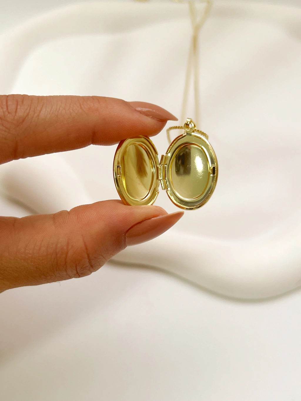 Delicado e cheio de significados o Colar Relicário Afeto é uma peça clássica cheia de amor e afeto, podendo ficar na família por gerações. A parte da frente abre e fecha, o que possibilita ser totalmente personalizável colocando até 2 fotos dentro dele e de sua escolha, para levar junto com você momentos e pessoas que são tão especiais!